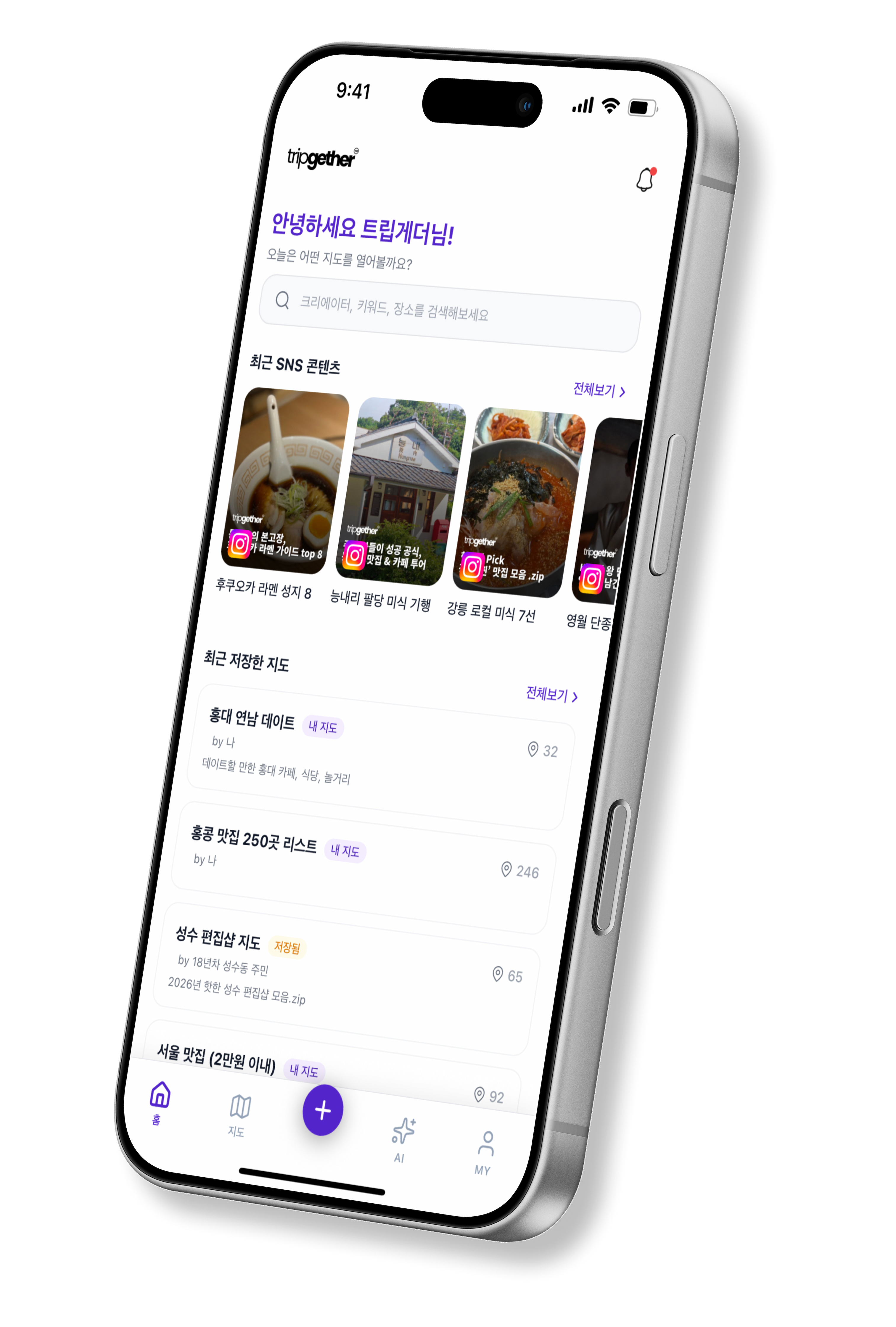Instagram, YouTube 링크를 붙여넣으면 AI가 장소를 자동 추출합니다.